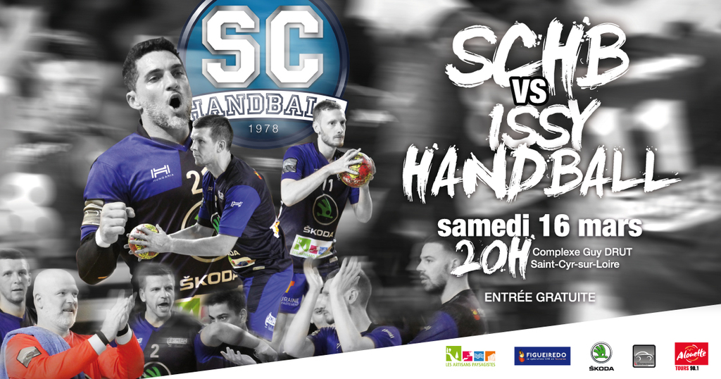 Pour le compte de la 14 ème journée de Championnat de Nationale 3 le SCHB reçoit l'équipe d'ISSY Handball Masculin le samedi 16 mars à 20h. La journée débutera à 14h avec les moins de 14 Régionaux qui seront opposés à Chambray, à 16h Les moins de 16 Régionaux face à Saint Jean de Braye et en lever de rideau à 18h les Seniors Féminines contre Saint-Avertin. On vous attends nombreux et nombreuses pour venir encourager nos équipes, vos équipes!
