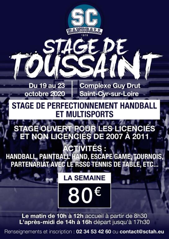 Pour l'inscription c'est par ici ==> https://www.sctah.eu/documents/Stage-Toussaint-2020-253470